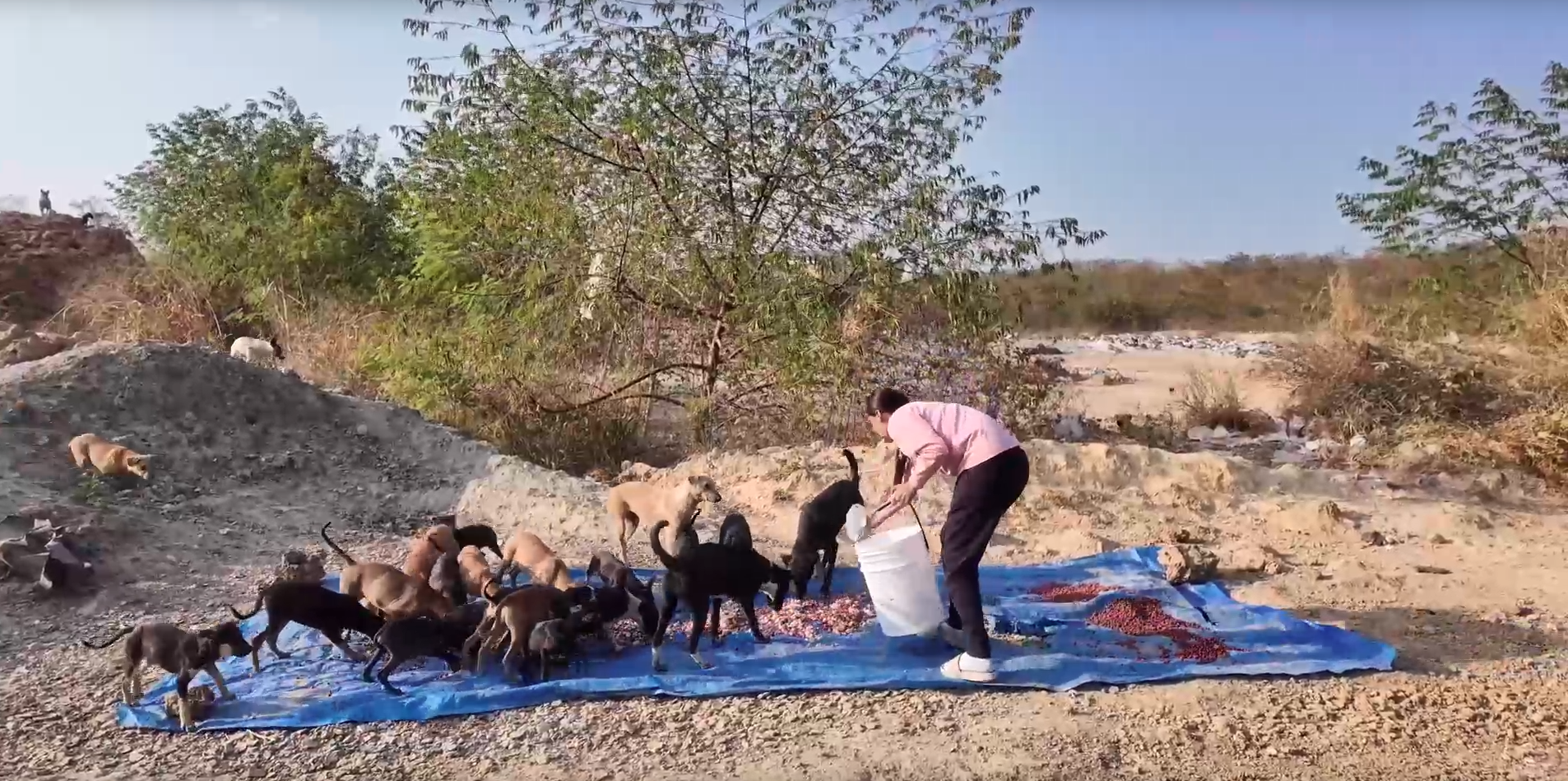จากการสอบถาม ปวันณาพัตร อายุ 49 ปี บอกว่า ตลอดระยะเวลาที่ผ่านมา 1 ปี ตนคอยนำข้าว อาหารเม็ด และขนน้ำใส่ถังมาเทให้ด้วยทุนตัวเอง มาวันเว้นวันบางครั้งก็ 3-4 วันมาที เพราะมาแต่ละครั้งจะต้องหาซื้ออาหารเม็ดมา 2-3 กระสอบ ใช้เงินไปครั้งละประมาณ 1,500 บาท พยายามทำมาตลอด 1 ปี เนื่องจากสงสารกลัวสุนัขจะหิวและขาดน้ำตาย แต่สุนัขมีจำนวนเยอะมากๆ 1 ปีที่ผ่านมายังไม่เยอะขนาดนี้ พยายามหาข้าว หาน้ำให้ด้วยกำลังทรัพย์เท่าที่มีอยู่