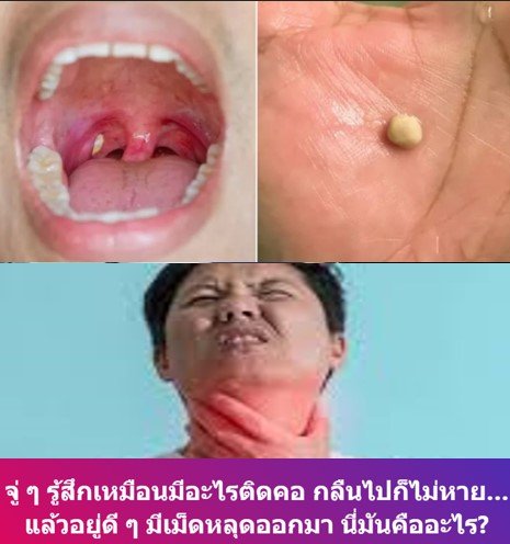 - มองเห็นก้อนสีขาวๆ เหลืองๆ ในช่องคอ