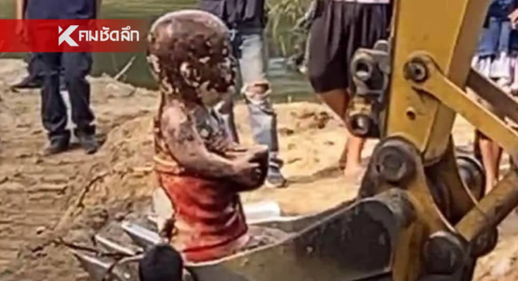 รองผู้ว่าฯ สุราษฎร์ นำทีมระดมขุด “พระพุทธรูปโบราณ” นานครึ่งวัน อึ้ง! นาทีโผล่พ้นน้ำ กลายเป็น รูปหล่อเรซิ่น สามเณรอุ้มบาตร หยอดเหรียญ