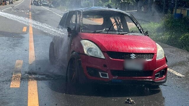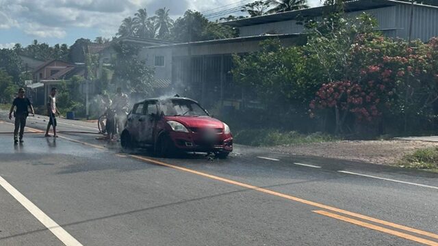 กำลังไปทำงาน อส.หญิง จอดรถวิ่งหนีตายระทึก คนร้าย ลอบวางระเบิด เสียงบึ้มดังสนั่น ถูกสะเก็ดระเบิด ไฟลุกโชนไหม้วอดรถทั้งคัน เจ้าหน้าที่เร่งลงพื้นที่ช่วยเหลือ