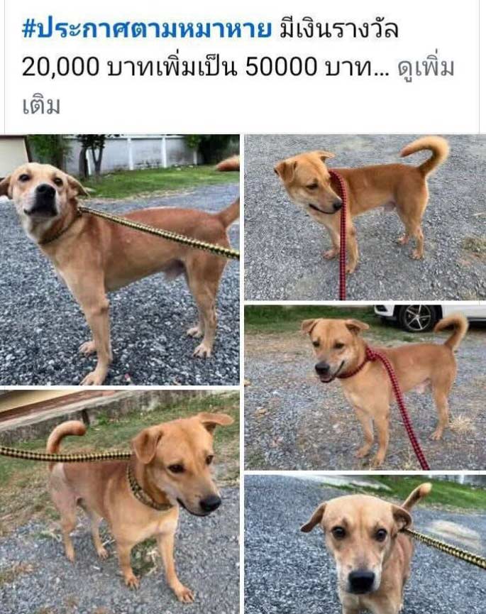จากกรณีผู้ใช้เฟซบุ๊กรายหนึ่ง โพสต์ลข้อความประกาศตามหาสุนัข มีเงินรางวัล 20,000 บาท ต่อมาเพิ่มเป็น 50,000 บาท ซึ่งสุนัขตัวดังกล่าวชื่อ น้องทองดี หายออกจากบ้านเมื่อวันที่ 31 ธ.ค. 2567 เนื่องจากมีแม่บ้านรายวันที่จ้างมาเฝ้าทำหมาหลุดหาย น้องมีแผลผ่าตัดข้างขวา ข้างหลังมีรอยเย็บใส่เหล็กอยู่ มีแผลเห็นได้ชัดเจน พิกัดจุดที่หายซอยรังสิตนครนายก 20 หลังจากน้องหลุดออกจากบ้านไป น่าจะตกใจเสียงพลุ เลยวิ่งหนีเตลิดไปไกล ใครเจอให้ติดต่อกลับมา ฝากพลังโซเชียลช่วยตามหาน้องให้ด้วย หลังจากที่โพสต์นี้ถูกเผยแพร่ออกไปมีผู้คนแชร์ไปเป็นจำนวนมาก