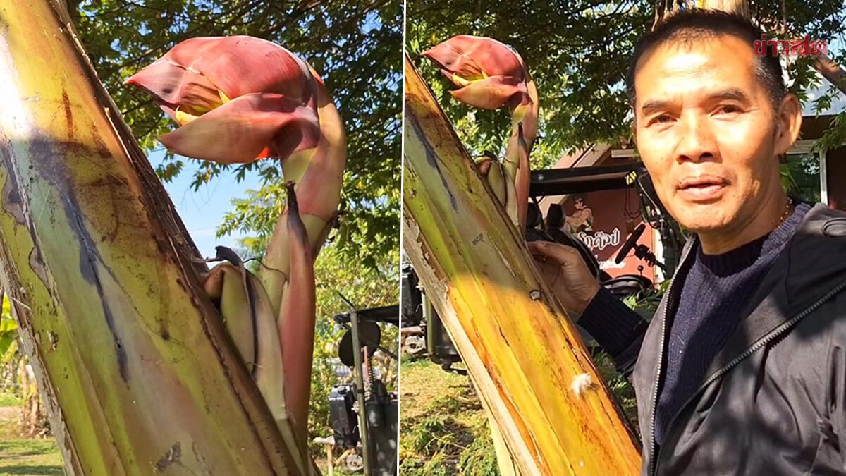 แตกตื่น กล้วยประหลาด หัวปลีสีแดง โผล่ชูออกกลางต้นคล้ายพญานาค แห่ตีเลขเด็ด เจ้าของเผยเข้าสวนมาแต่ ไม่เคยเจอมาก่อน เชื่อมาให้โชค
