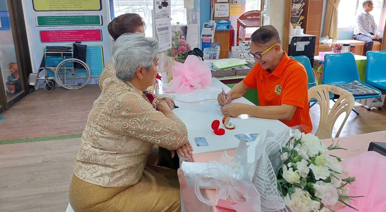 บรรยากาศเป็นไปอย่างสนุกสนานครึกครื้น พรรคพวกเพื่อนฝูงญาติๆ เดินทางมาแสดงความยินดีกันอย่างคับคั่ง โดยมี นายอนุชา ชายเชื้อ ปลัดอำเภอฝ่ายทะเบียนราษฎร์เป็นผู้รับจดทะเบียน